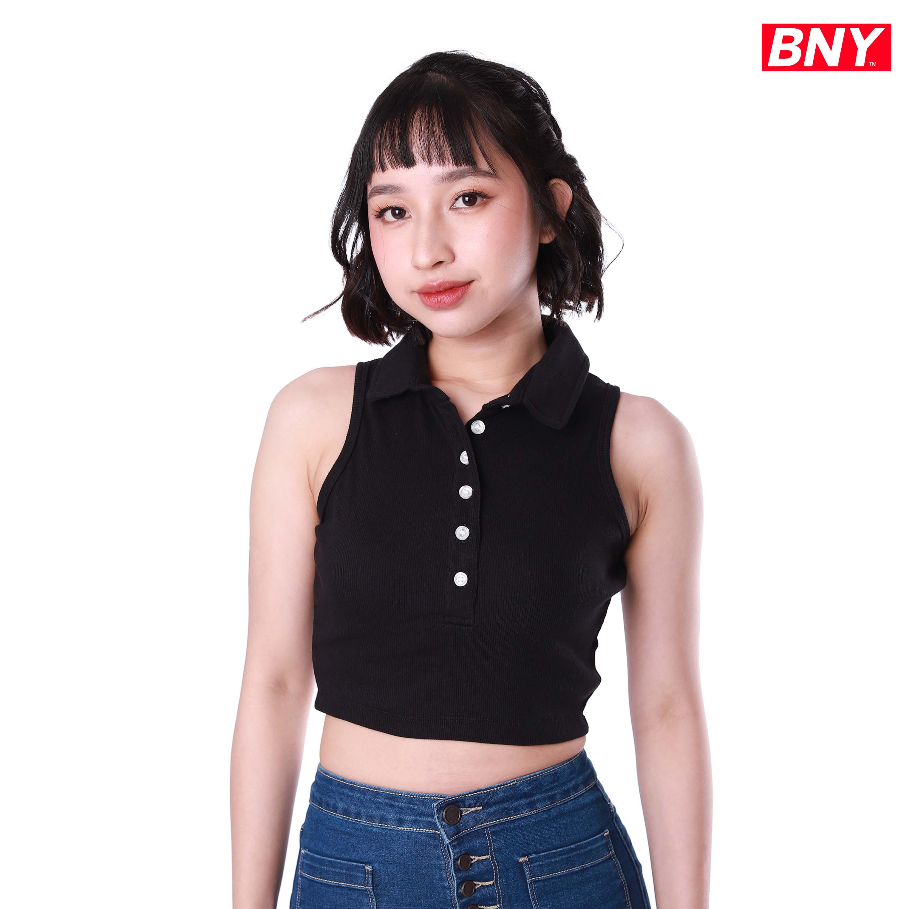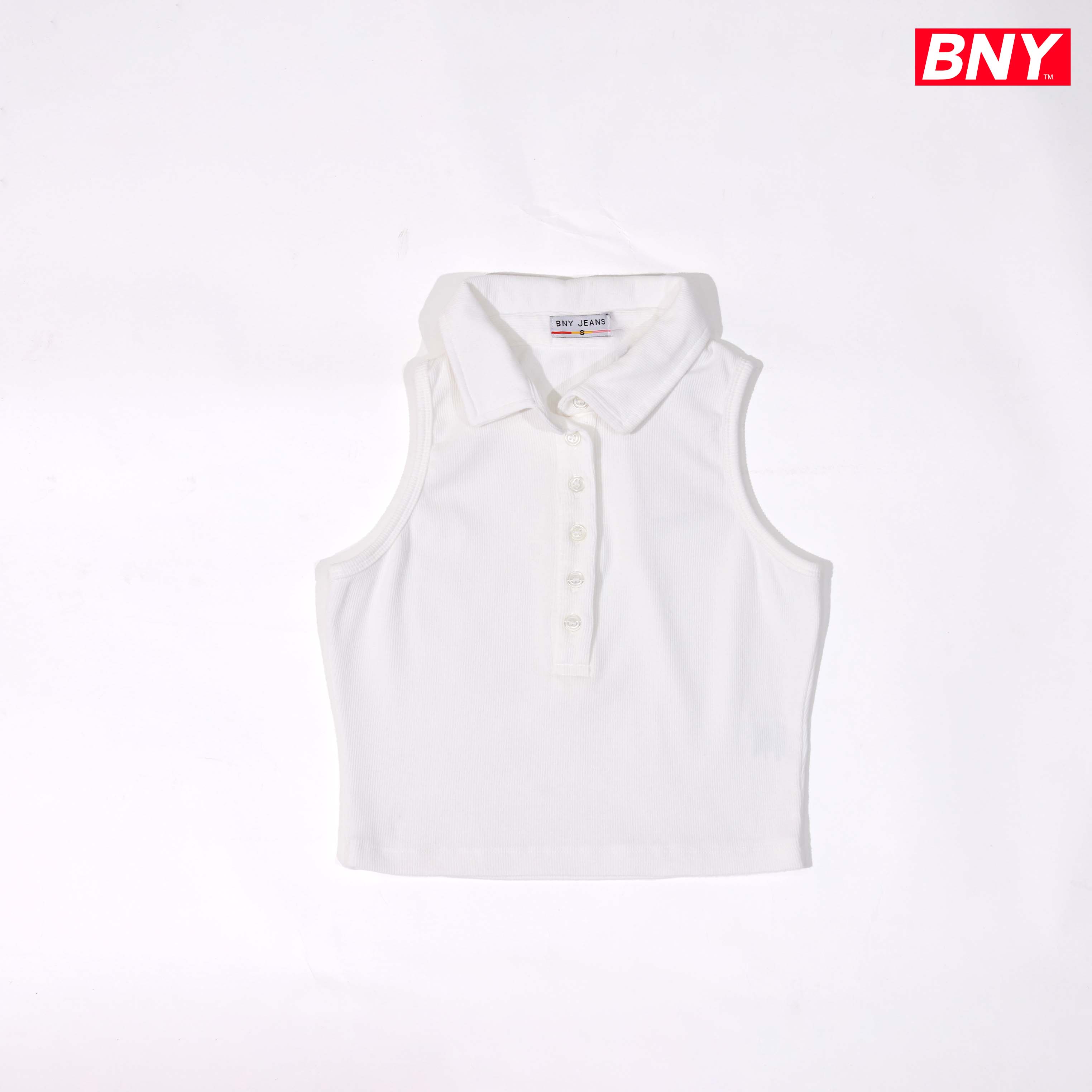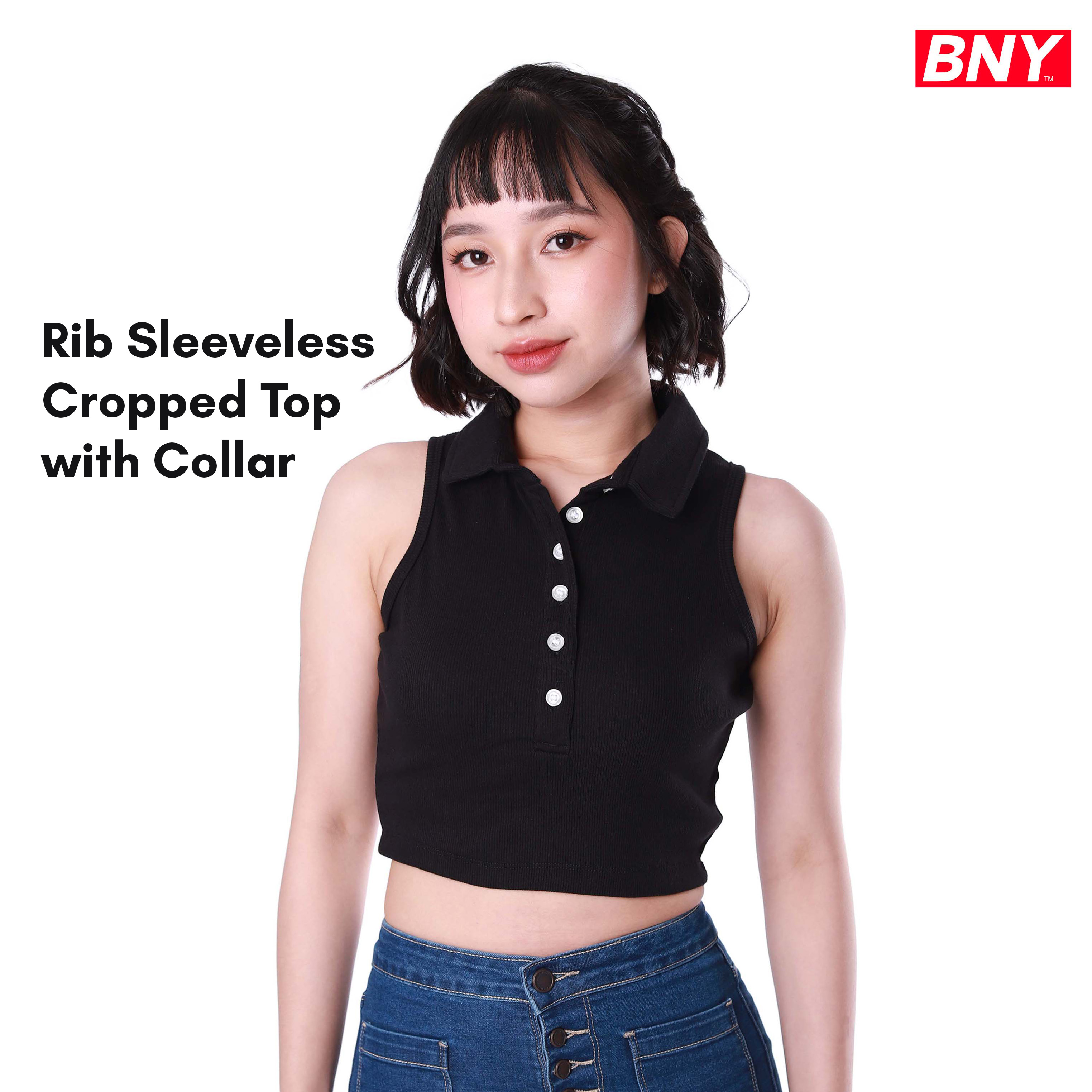 LADIES' RIB SLEEVELESS CROPPED TOP WITH COLLAR