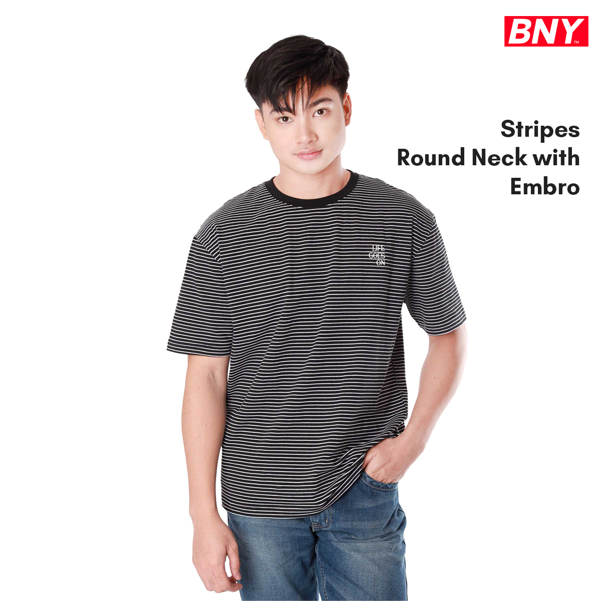 MEN'S STRIPES ROUND NECK WITH EMBRO