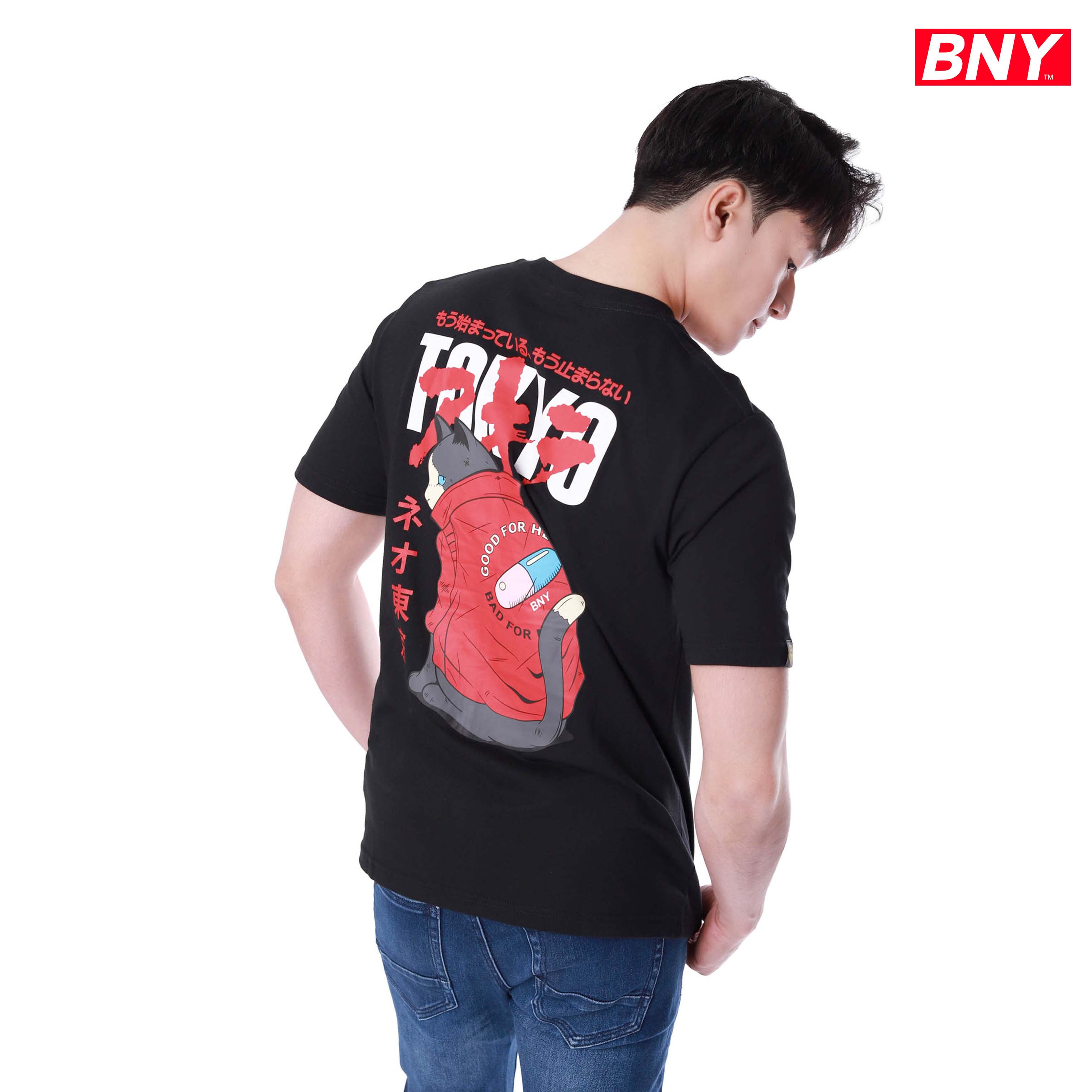 MEN'S JERSEY RELAXED FIT ROUND NECK ,BACK AND FRONT TOKYO PRINT DESIGN