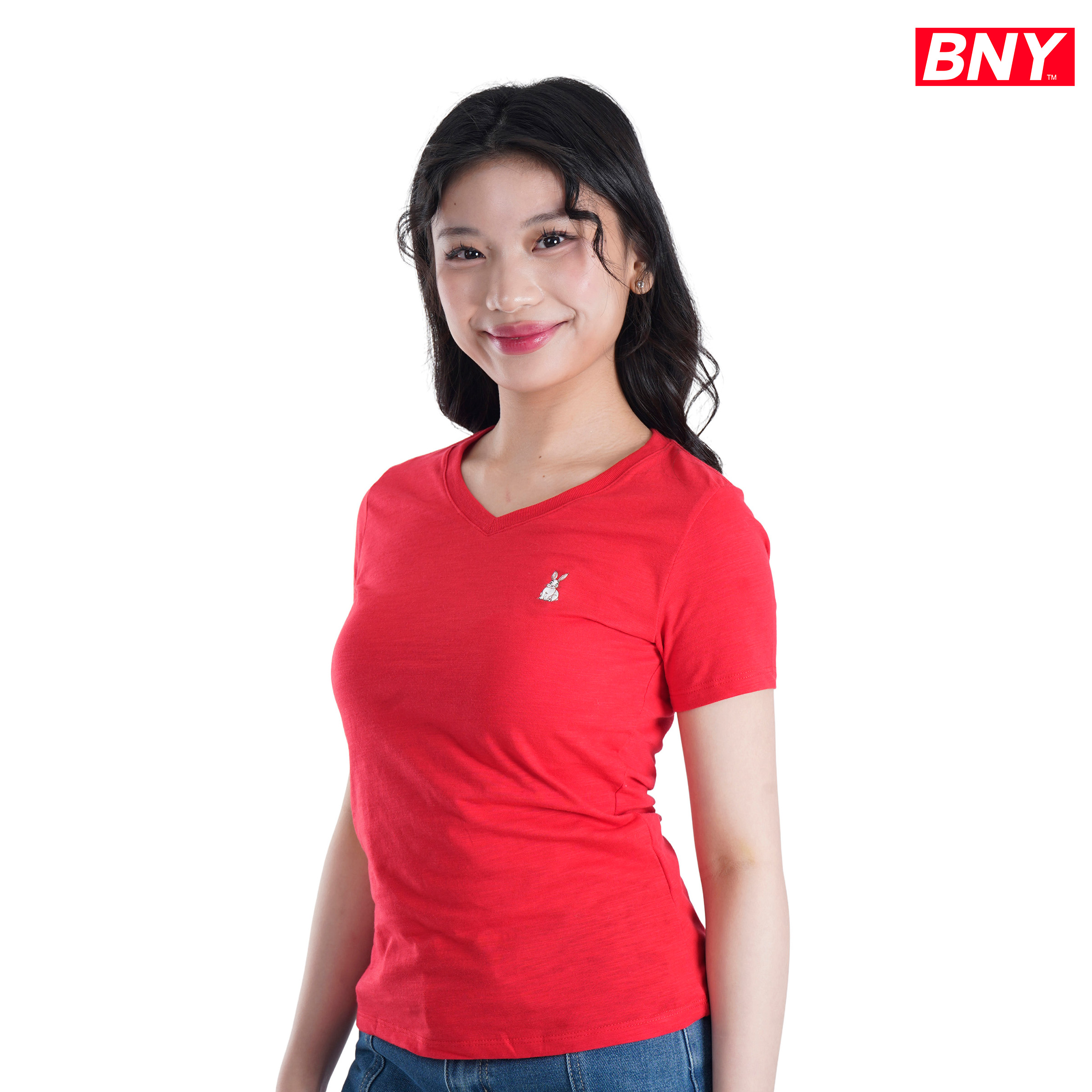 LADIES' V-NECK SLUBS WITH EMBRO (242)