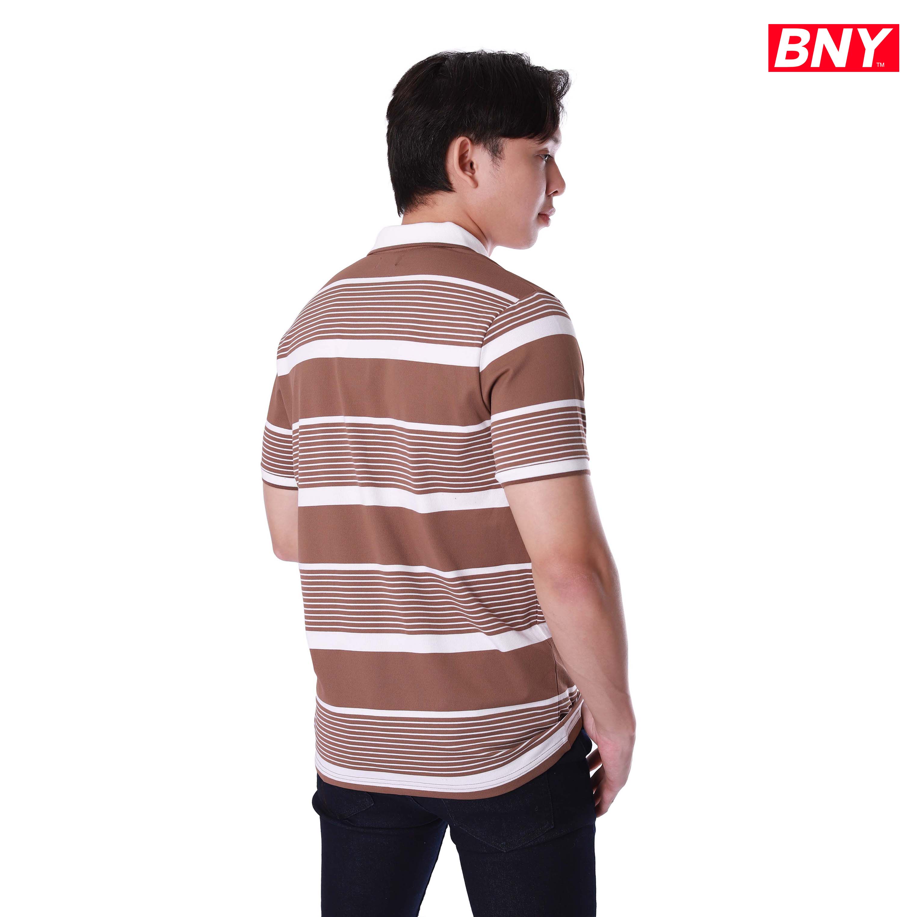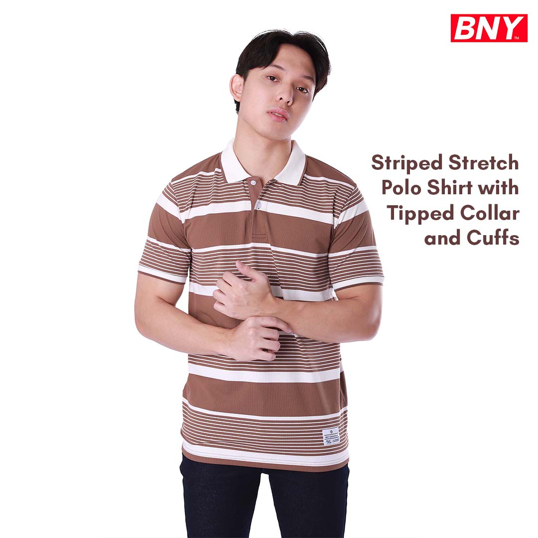 MEN'S STRIPED STRETCH POLO SHIRT WITH TIPPED COLLAR AND CUFFS