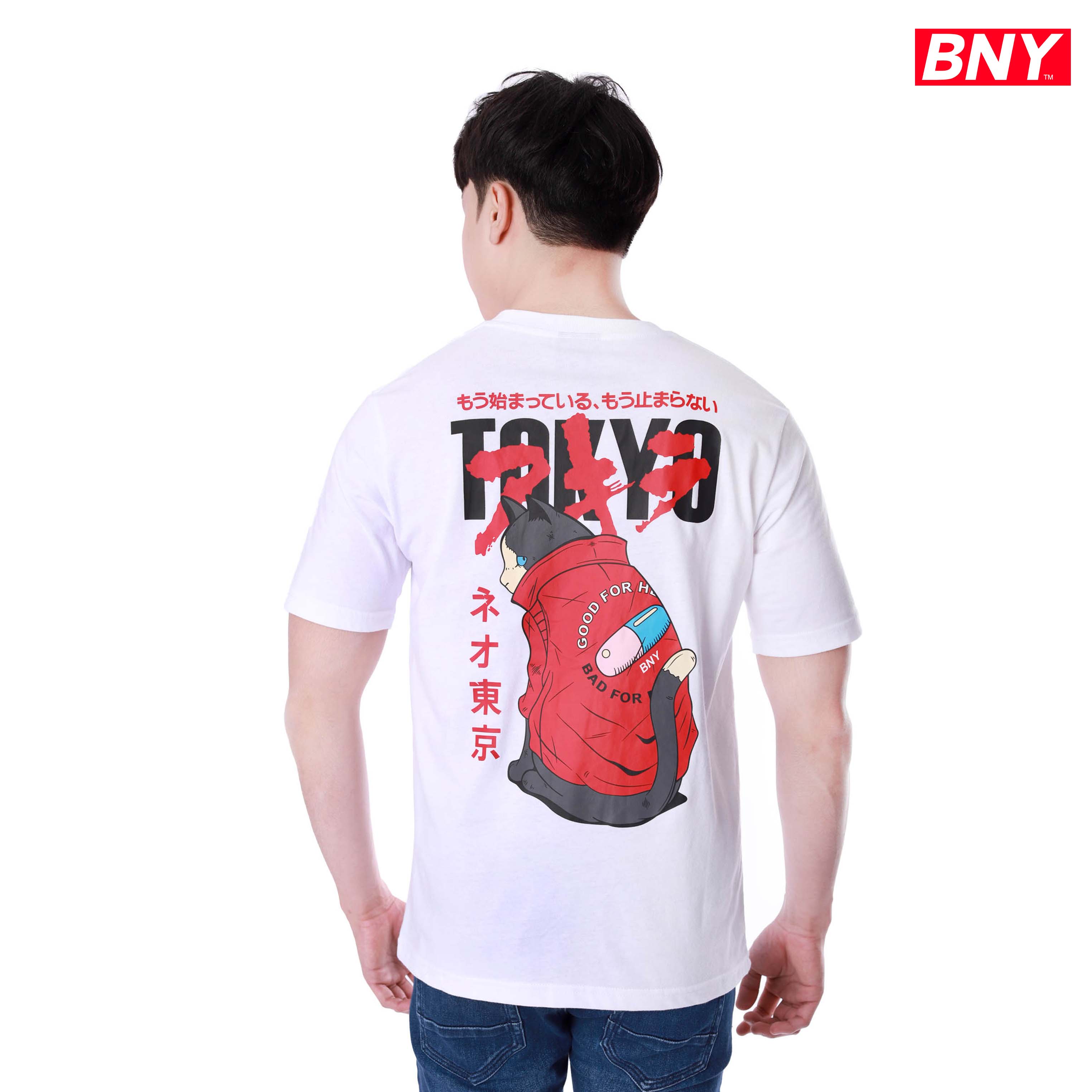 MEN'S JERSEY RELAXED FIT ROUND NECK ,BACK AND FRONT TOKYO PRINT DESIGN
