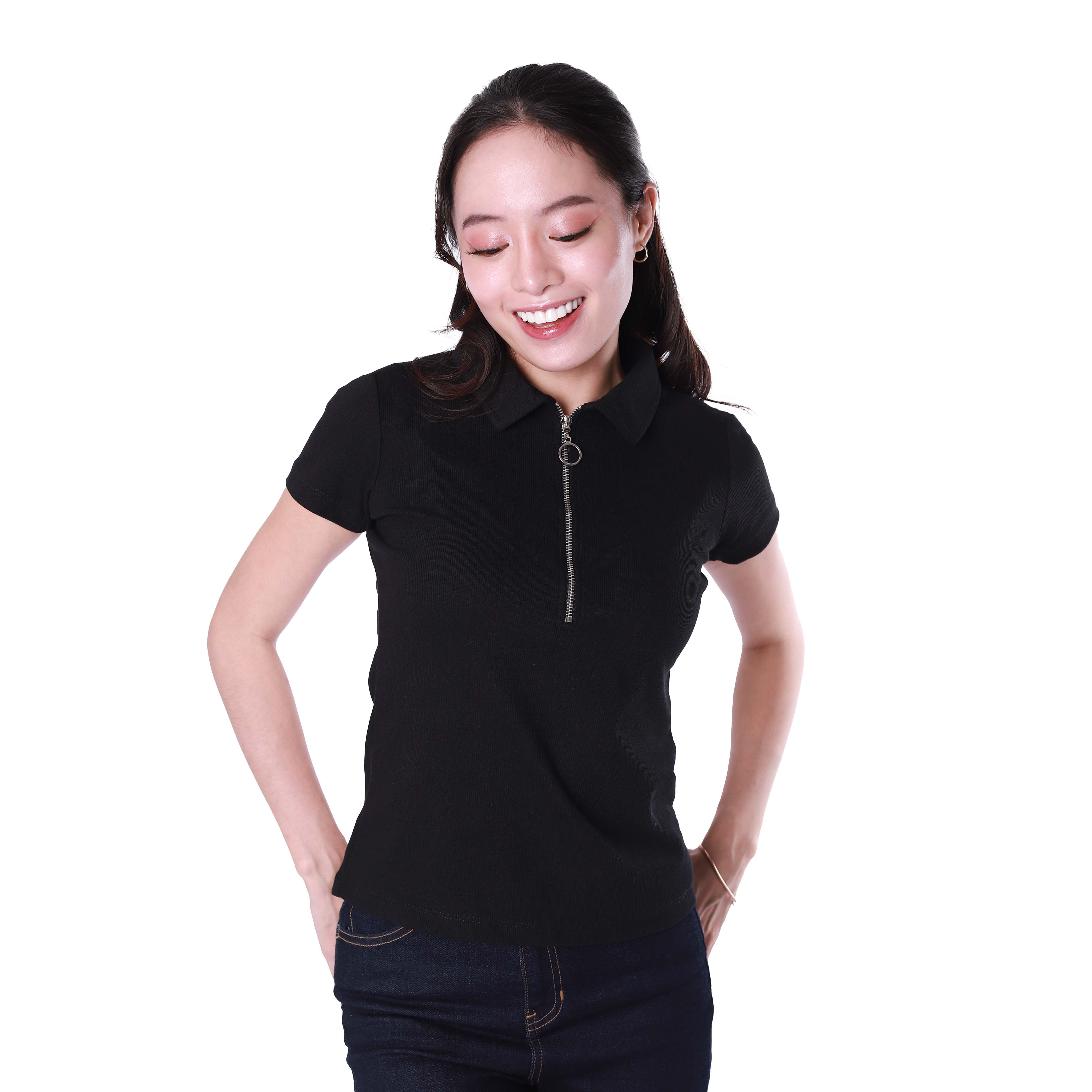 Product Name: LADIES' RIB SHORT SLEEVES ZIPPER TOP (506)