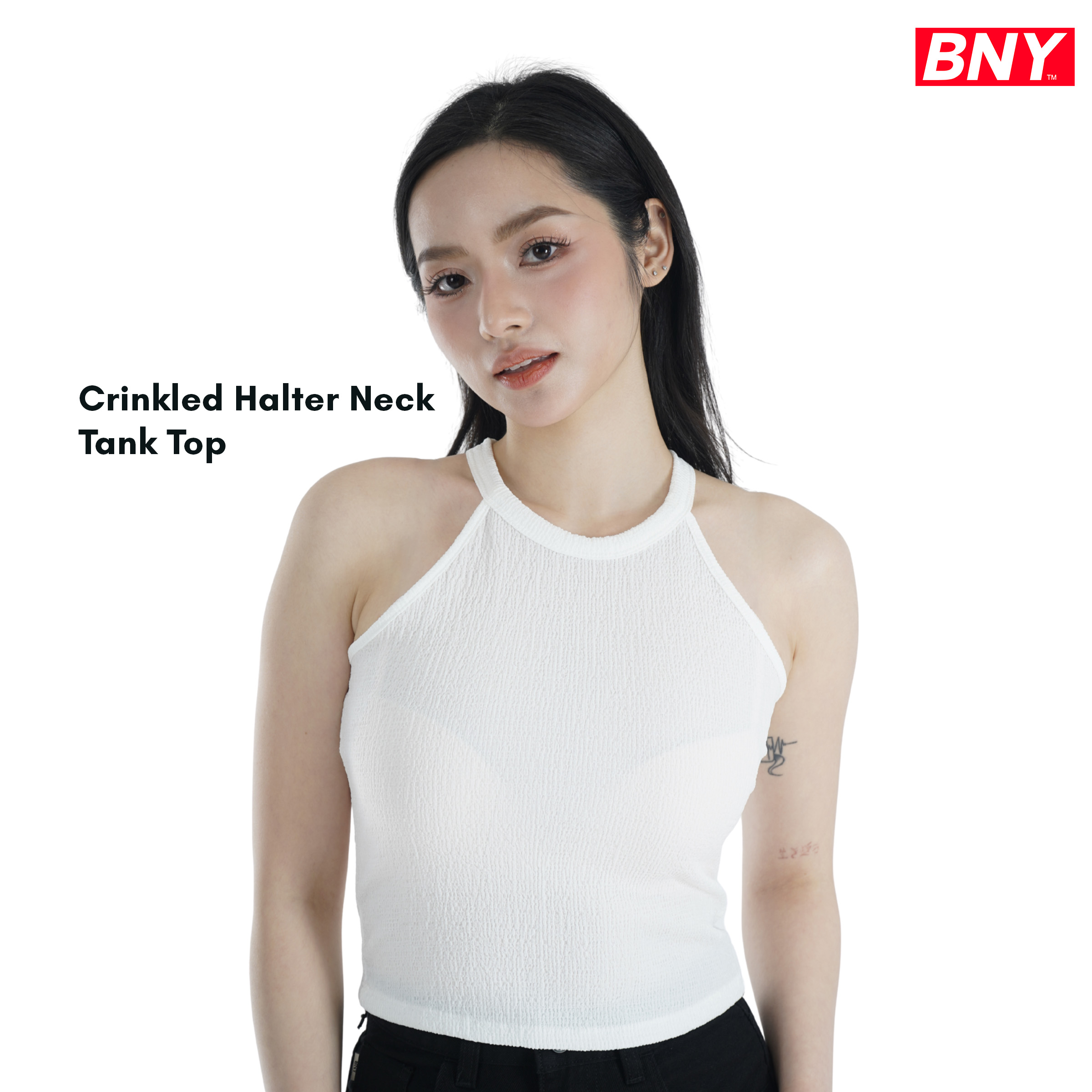 LADIES' CRINKLED HALTER NECK TANK TOP (289)