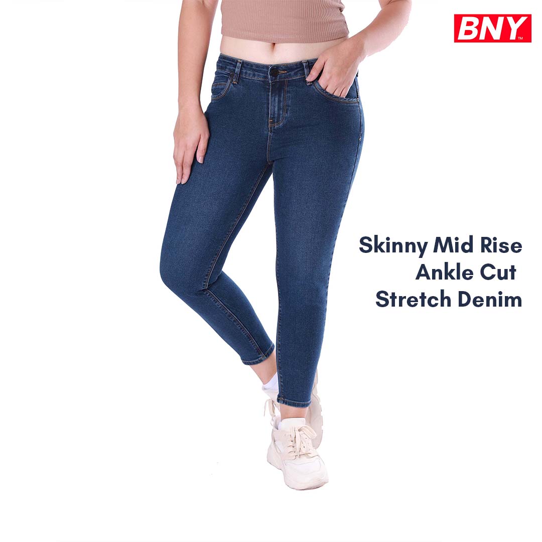 LADIES' SKINNY MID RISE ANKLE CUT STRETCH DENIM