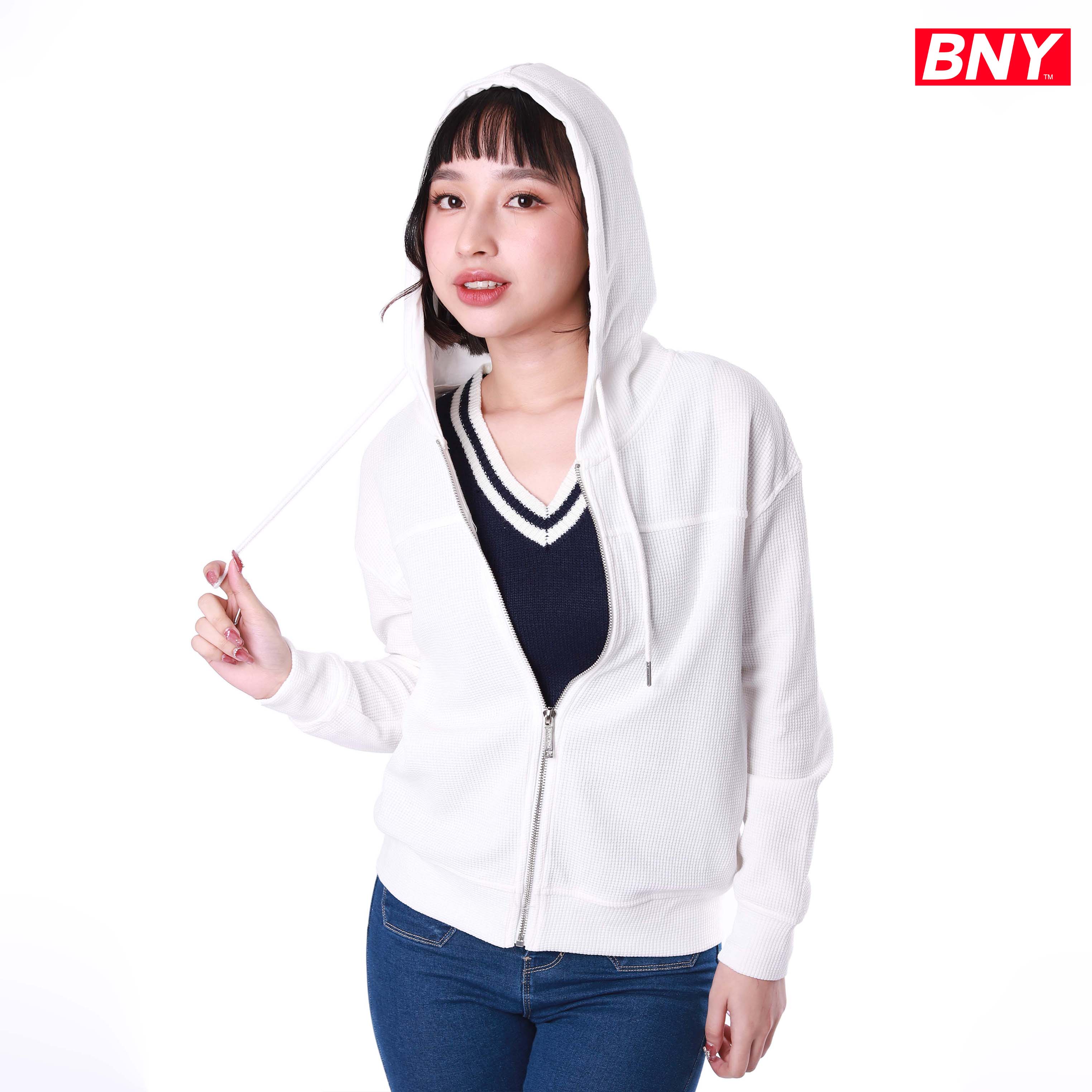 LADIES' WAFFLE HOODED JACKET WITH ZIPPER