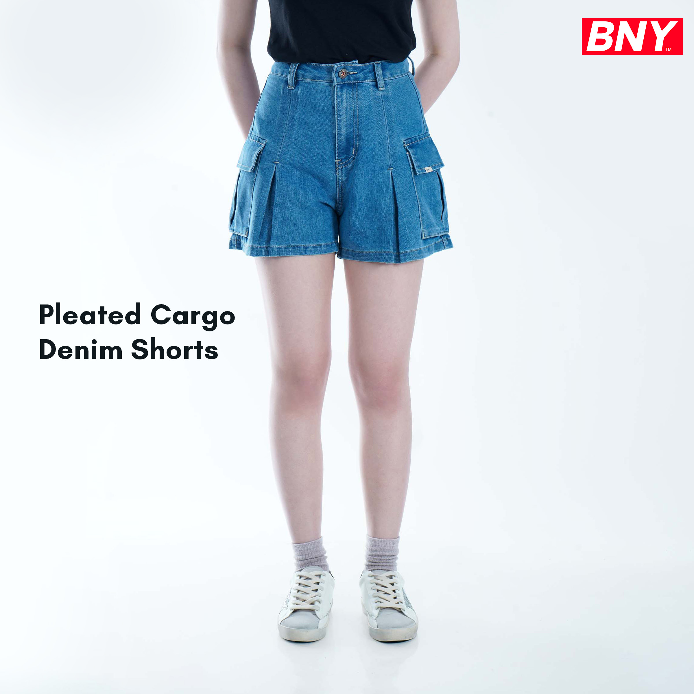 PLEATED CARGO SHORTS DENIM (473)